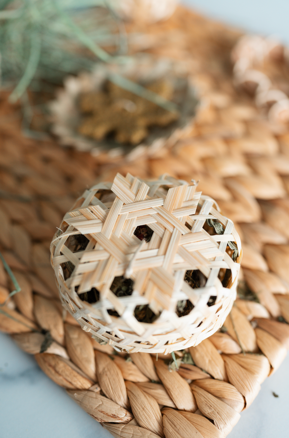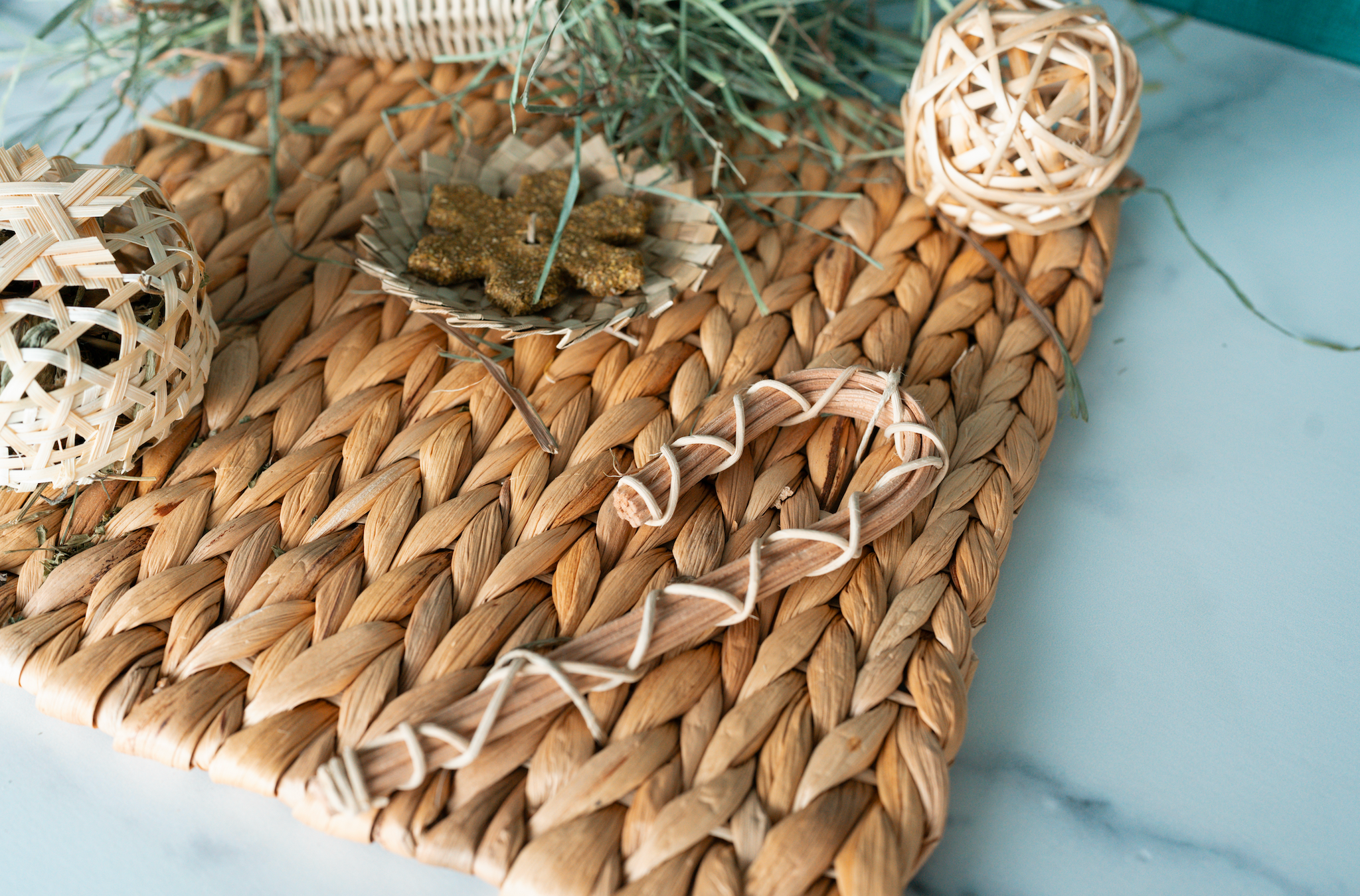 Each mat is thoughtfully designed to encourage natural foraging and chewing behaviors, keeping your rabbit or small pet happily entertained. Filled with premium soft timothy hay, woven textures, and festive elements like a snowflake ball, candy cane twist, and woven chew accessories, it’s the perfect holiday enrichment piece.